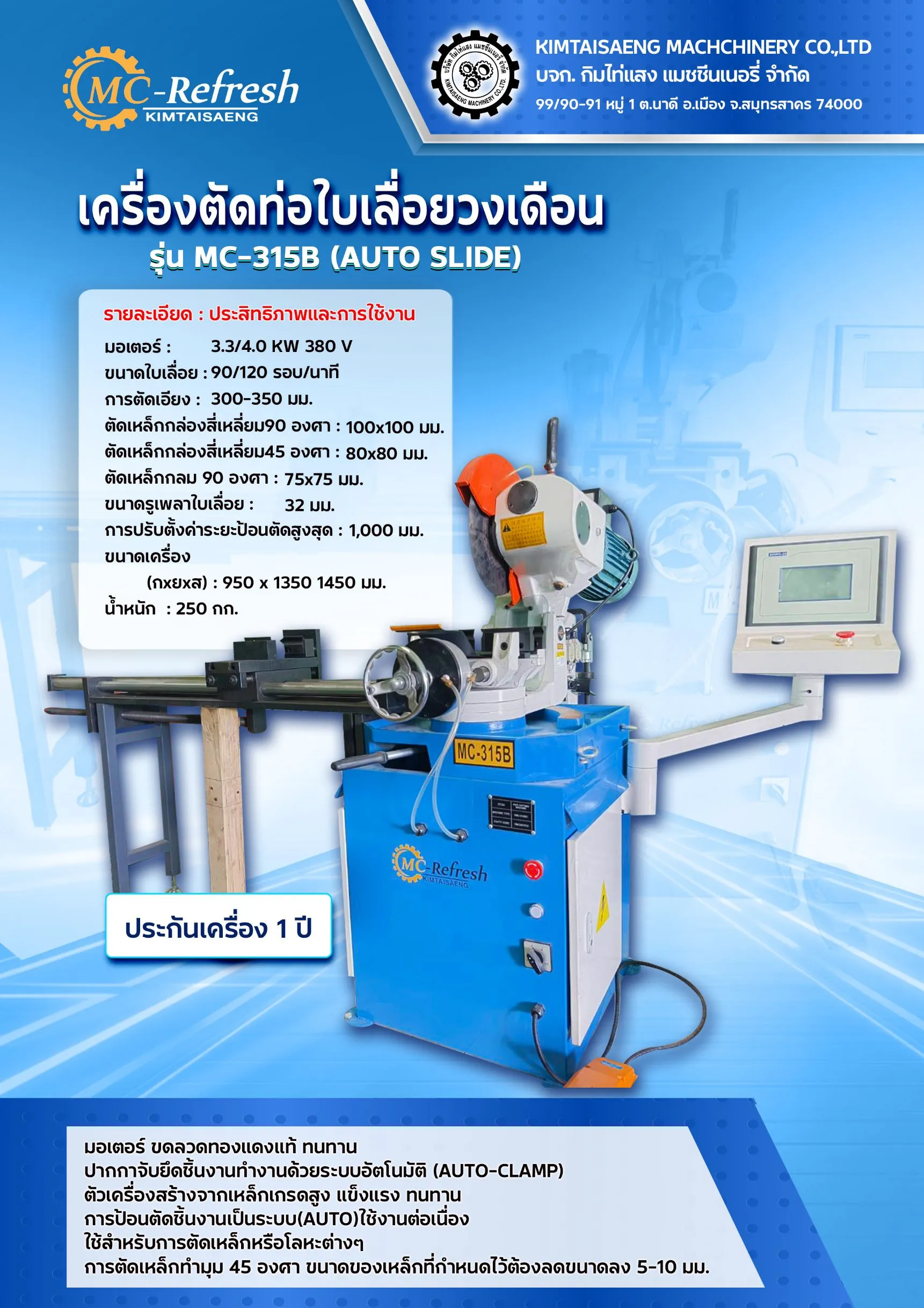 เครื่องตัดท่อใบเลื่อยวงเดือน รุ่น MC-315B (AUTO SLIDE)